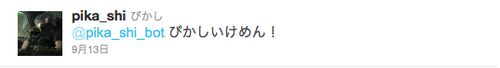 @pika_shi_bot (http://twitter.com/#!/pika_shi_bot) は、@pika_shi (http://twitter.com/#!/pika_shi) のTLから学習する人工無能botです。アルゴリズム・プログラムなどはこちら→http://d.hatena.ne.jp/pika_shi/20110915/1316076750基本機能・TL学習pika_…