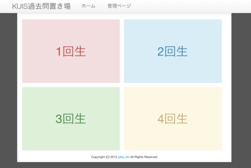 KUISの過去問サイト作ったよー!1年くらい前にサイトが閉鎖されたので,友人と2人でリニューアルして立ち上げ直した.http://kuis-kakomon.appspot.com/GitHub: pika-shi/KakomonProject · GitHubKay Framework という,GAE専用のPythonフレームワークを使っ…